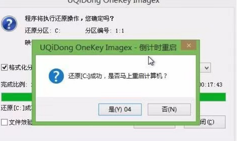 5、當還原成功之后提示重啟計算機,單擊“是”。