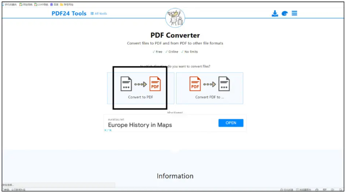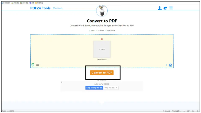 第二種方法是通過在線的方式來將Word文檔轉換成PDF文件格式,這里就用到了PDF 24tools在線轉換網站,操作也是非常簡單方便,具體步驟如下: