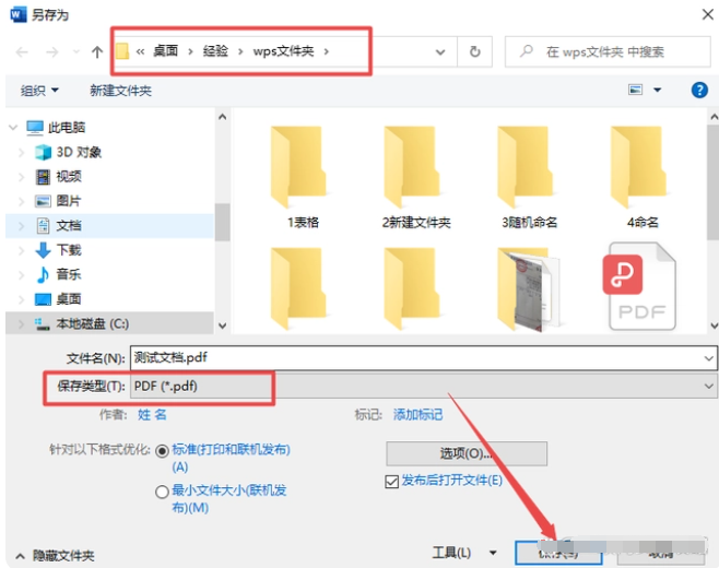 3、在另存為窗口設置中,選擇需要保存的路徑,將保存類型選擇為“PFD”格式,點擊“保存”,就可以將word轉換成pdf文件保存啦。