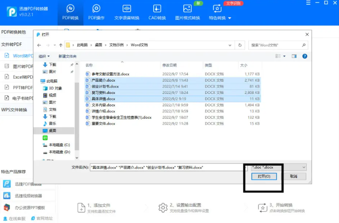 2、把需要轉換格式的Word文檔選中,點擊【打開】添加進來。