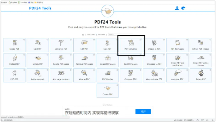 1、進入PDF 24tools在線轉換網站的網頁,在頁面中選擇【PDF converter】進入。