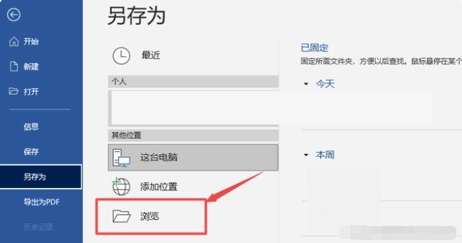 2、在左側列表中,點擊“另存為”,然后再點擊“瀏覽”。