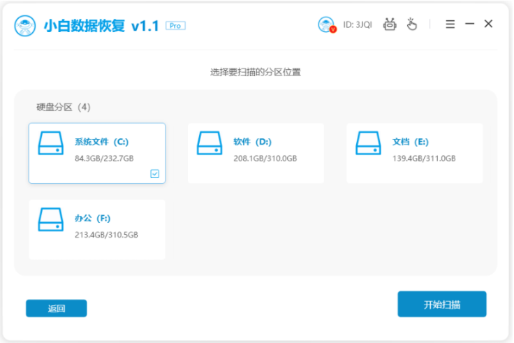 方法二:使用小白數據恢復軟件恢復清空回收站的文件