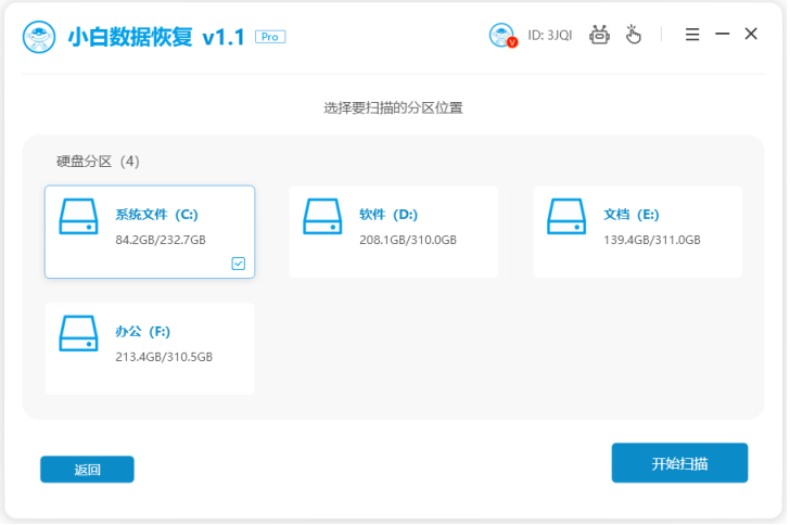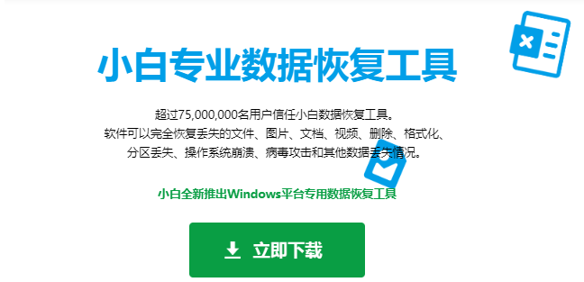 這是一種比較便捷也比較經濟的方法,適用于你沒有備份數據,或者遇到了復雜的數據丟失情況,例如誤刪、格式化、分區丟失等。這里給大家介紹的是專業的小白數據恢復軟件,操作步驟如下: