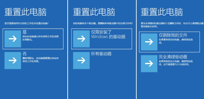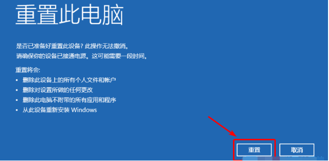 注意事項:如果方法一無法重置,或者重置后問題依舊,說明遇到了靠電腦自己無法修復的故障,可以嘗試方法二的借助u盤重裝系統解決。