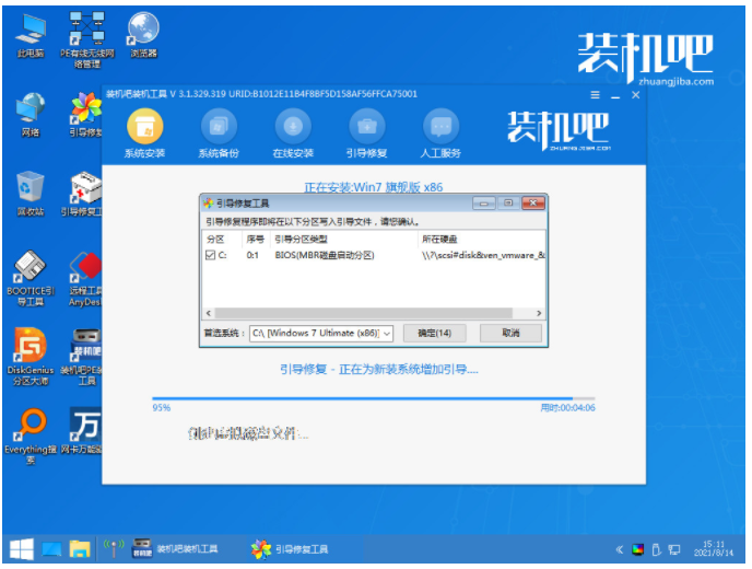 6、電腦裝機軟件接下來將會彈出提示框將引導修復工具為系統增加引導,我們點擊確認按鈕。