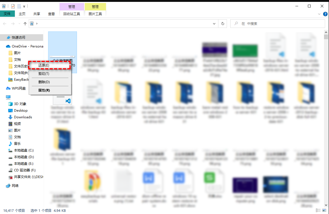雙擊“回收站”將其打開,找到你剛剛刪除的文件,右鍵點擊該文件,然后點擊“還原”即可。該方法在文件沒有在回收站被清空時可以使用。