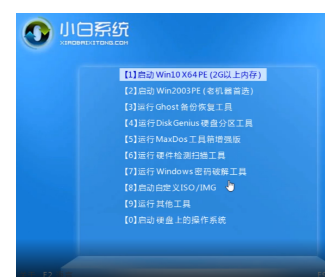 3、可以看到進入到小白PE系統界面。我們選擇“啟動win10x64PE(2G以上內存)”回車鍵進入。