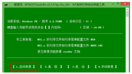 5、接著選擇“1.自動修復”。