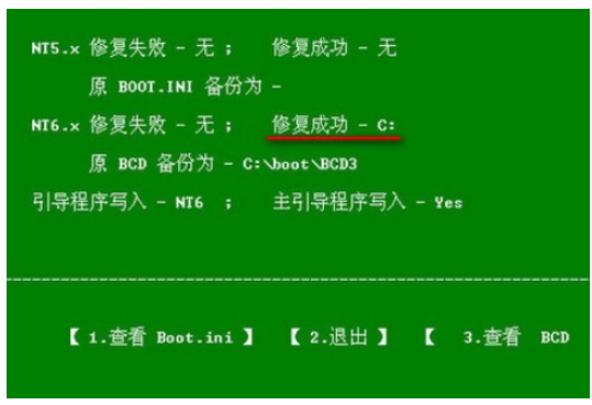6、等待引導修復完成后,點擊退出并拔掉u盤重啟電腦就可以修復電腦沒有引導的問題了。