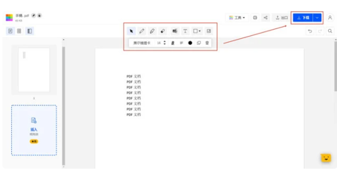 我們可以看網站提供了插入圖片、文字等編輯功能,大家可以根據需要自由編輯,最后編輯完畢我們點擊右上角的“下載”按鈕將文檔保存下來就可以啦。