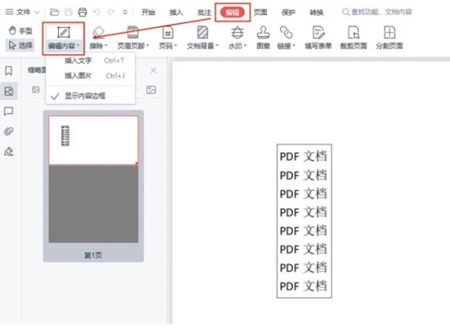 操作步驟:用WPS打開pdf文檔,在編輯功能中選擇“編輯內容”選項就可以開始編輯了,編輯完畢后,再按下Ctrl+S組合鍵進行保存即可。