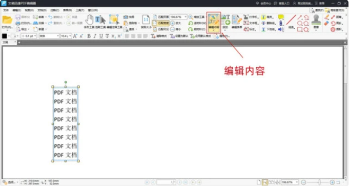 操作步驟:打開軟件之后將我們的pdf文檔導入,接著在上方點擊“編輯內容”選項,就可以開始進行編輯了,比如添加文字,復制粘貼,剪切,增加圖片之類的操作。