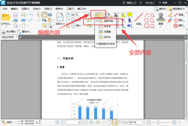 2、這樣就可以選擇【編輯內容】,選擇【全部內容】對整個文件進行編輯。