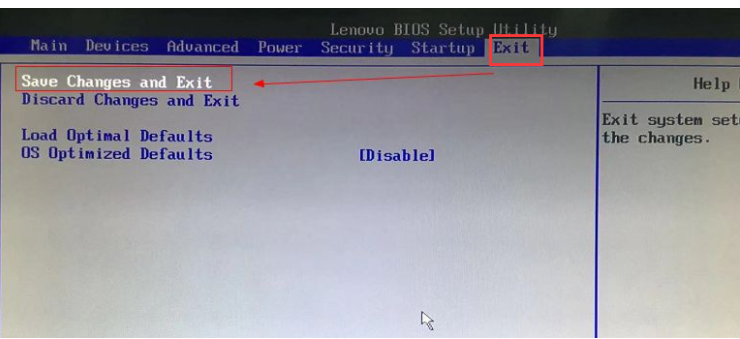6、切換到exit界面,選擇save changes and exit項,或者按F10進行保存退出。