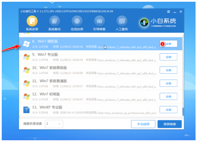 5、電腦進入pe系統界面之后,打開桌面上的小白裝機工具,選擇本次需要安裝的系統,點擊安裝。