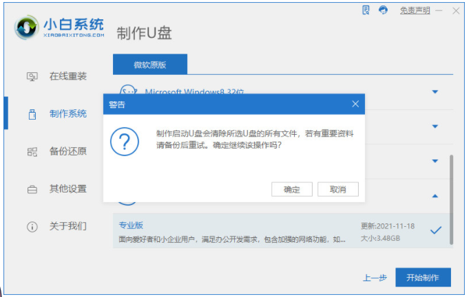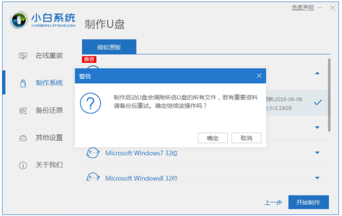3、在制作u盤啟動盤之前,大家記得要備份好重要資料,當彈出備份提示時,點擊確定按鈕。
