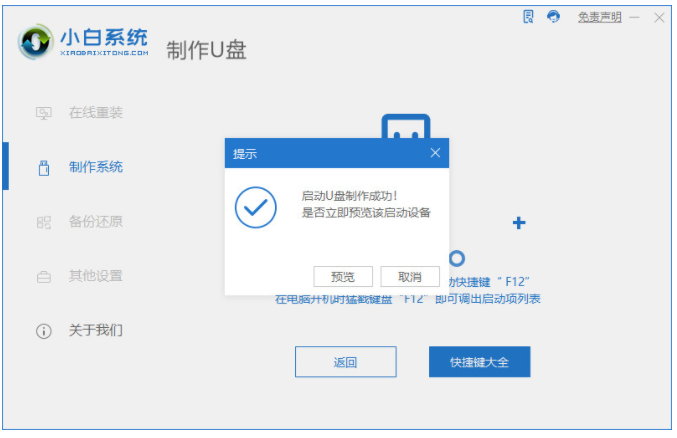6、當提啟動u盤制作成功之后,點擊取消按鈕。