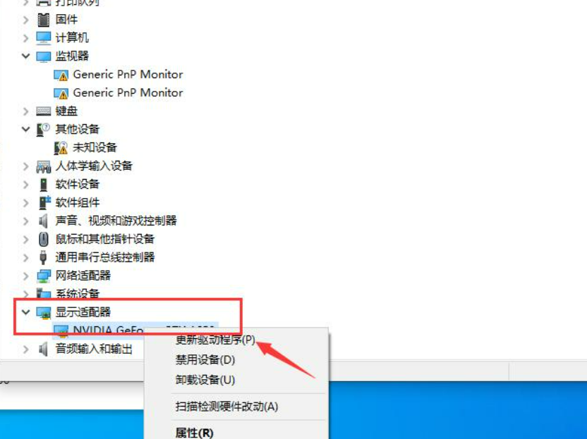 展開“顯示適配器”更新驅動: