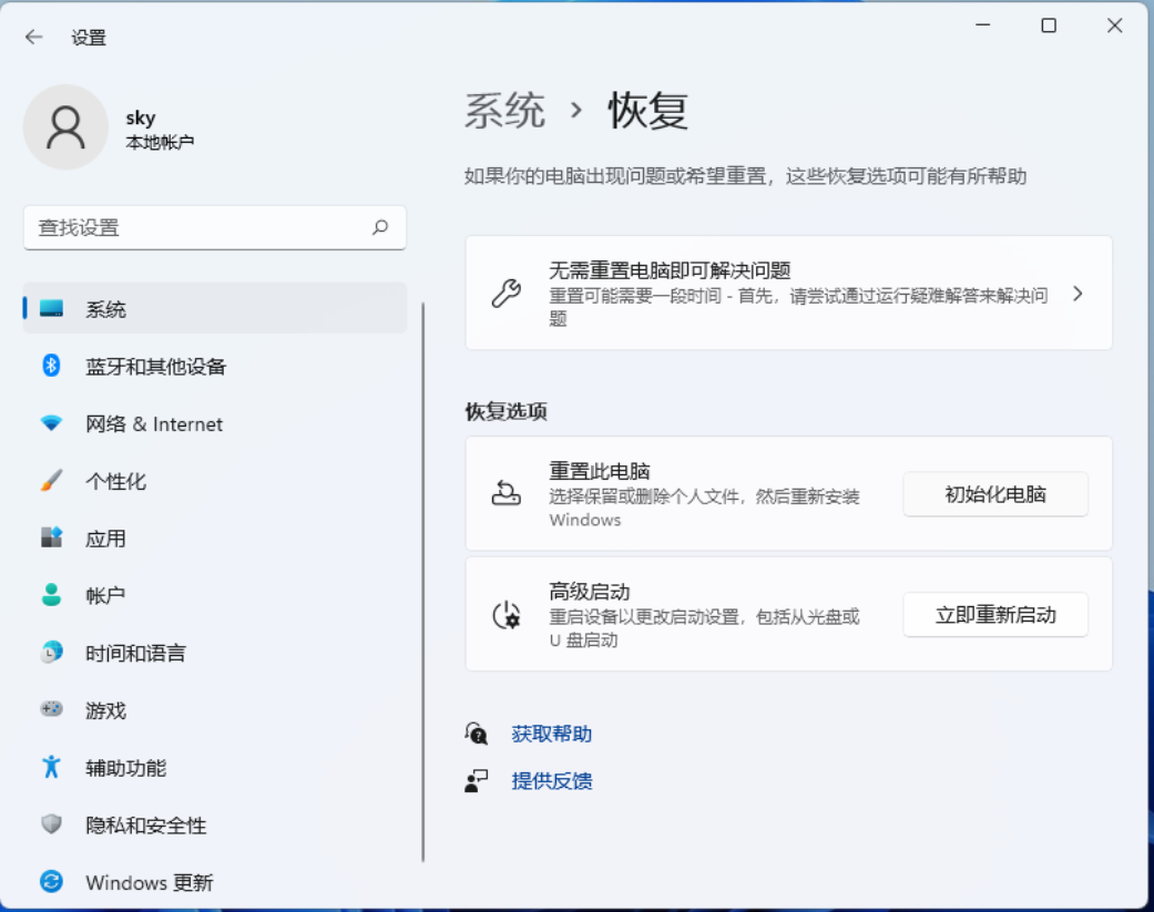 重置系統是恢復系統初始安裝版本