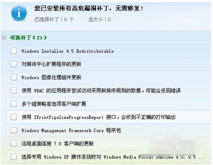 7. 完成驅動的安裝我們就需要對系統進行打補丁操作了,這項操作十分重要,因為病毒可能通過漏洞對你的系統進行攻擊從而使你的電腦癱瘓,因此打補丁勢在必行。打補丁之前我們需要安裝殺毒軟件和安全衛士,通過這些軟件來檢測我們的電腦那些補丁沒有安裝,進而安裝這些補丁。