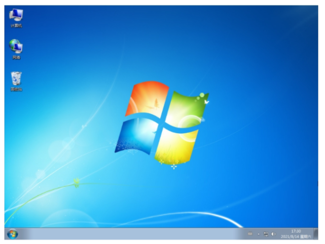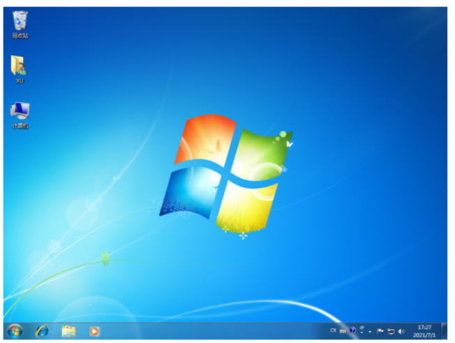 6、耐心等待,直至進入到新的系統桌面就說明用u盤重裝win7系統成功。