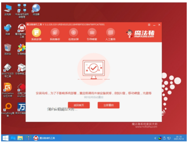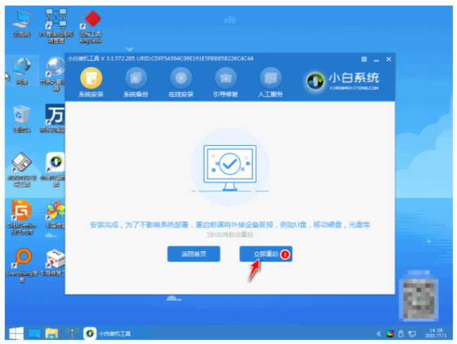 8、系統安裝完成之后,選擇點擊立即重啟。
