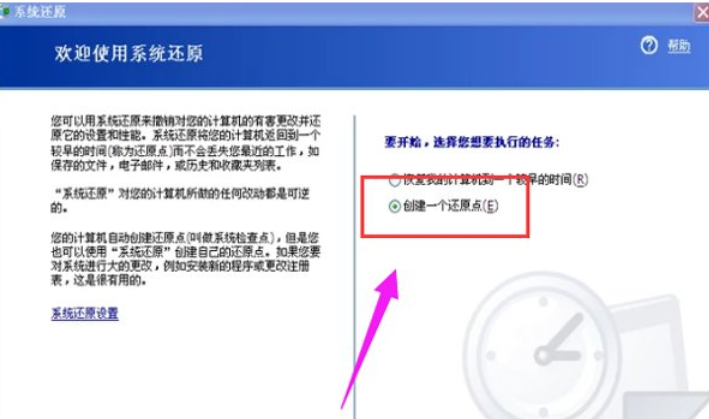 4、打開“歡迎使用系統還原”對話框選,選中“創建一個還原點”,點擊“下一步”。