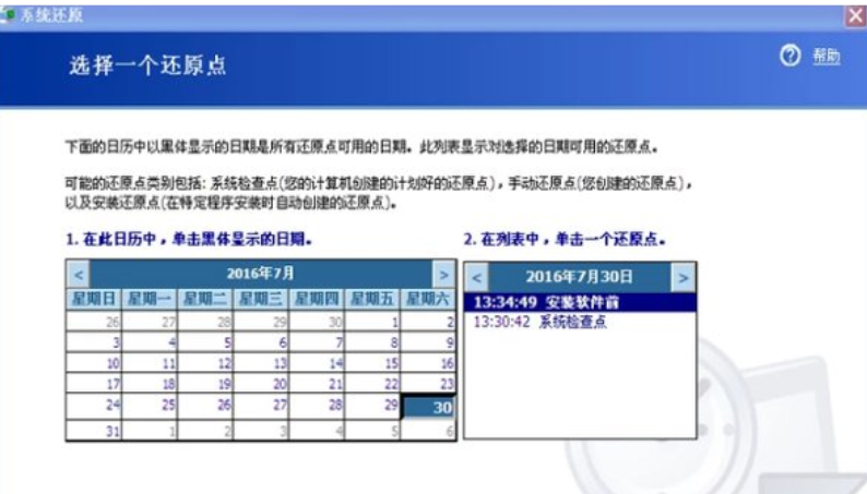 8、打開“選擇一個還原點”窗口,選擇剛剛創建的還原點,點擊下一步。