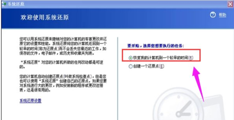 7、選中“恢復我的計算機到一個較早的時間”選項,點擊下一步。