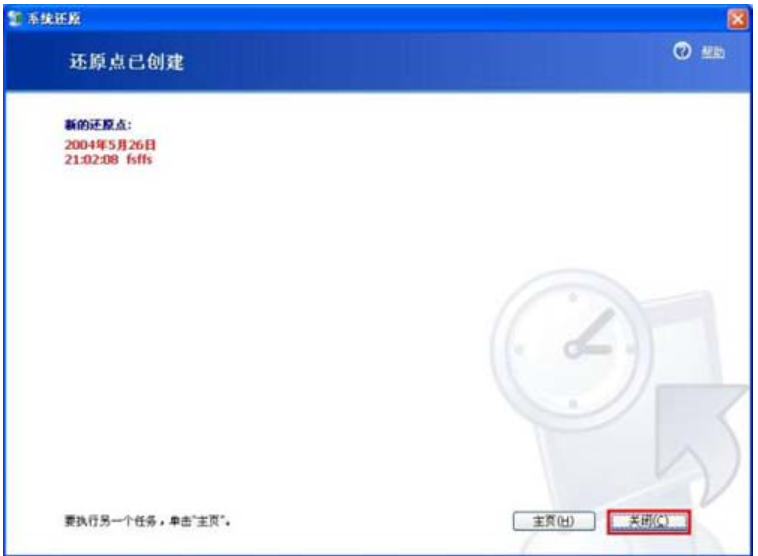 6、提示“還原點已創建”后,點擊“主頁”按鈕返回主界面。