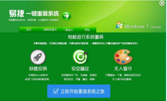 1、首先下載安裝好易捷一鍵重裝系統軟件,雙擊打開點擊“立即開始重裝系統之旅”。