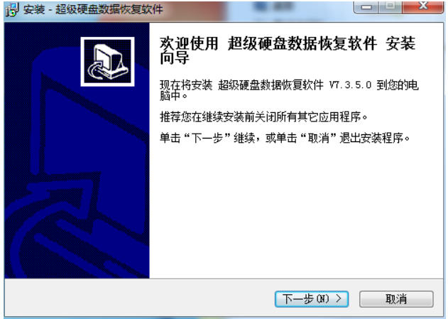1、自行在電腦瀏覽器查找超級硬盤數據恢復軟件并下載下來,解壓到當前文件夾中,點擊其中的.exe應用程序,進入安裝向導界面。