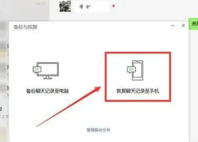 2、彈出的對話框,從中選擇【恢復聊天記錄至手機】,然后手機會收到消息提示,接下來只需要根據手機上的提示進行操作即可。