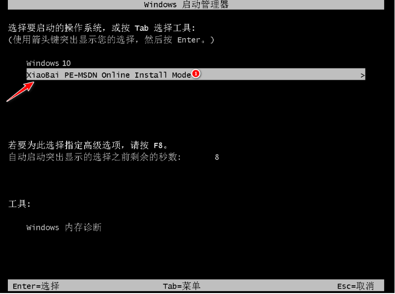 來到開機選項界面,如圖示,選擇第二項進入xiaobai-pe系統。