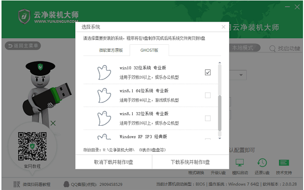 3、選擇需要的windows系統(如果自己有準備好的系統鏡像,可以點擊取消下載并制作U盤),點擊下載系統并制作U盤。