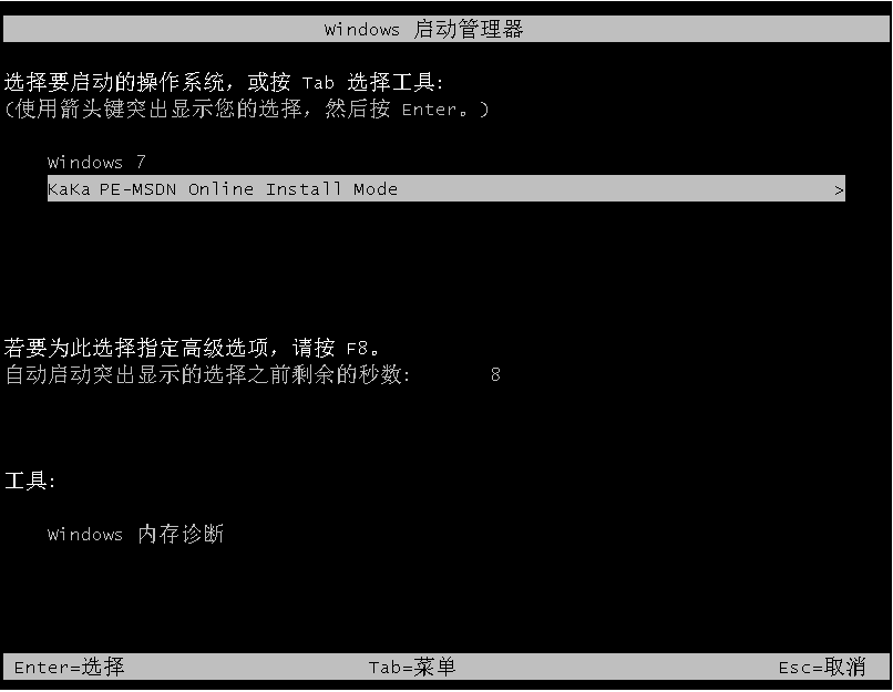 4、在pe系統內,咔咔裝機工具會自動安裝系統,完成后重啟電腦。
