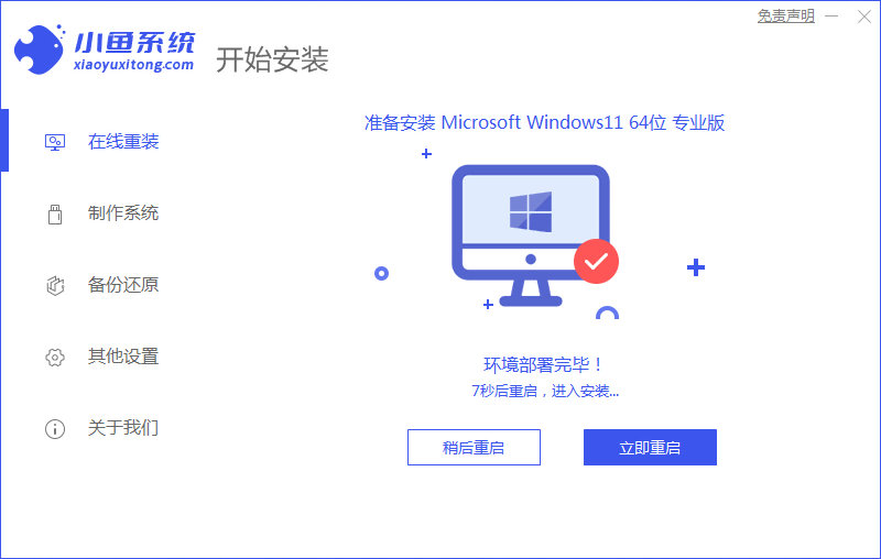 3、等待安裝環境部署完畢后,點擊立即重啟。