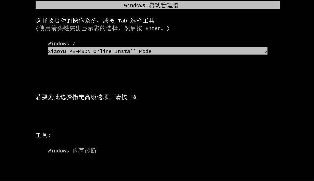 5、重啟后進入啟動管理器界面,選擇第二項,回車。