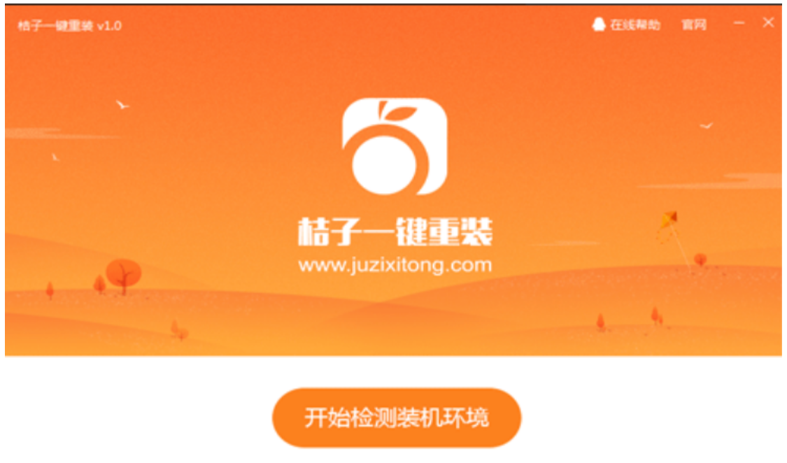 1、下載橘子一鍵重裝系統軟件并打開,點擊開始檢測裝機環境;