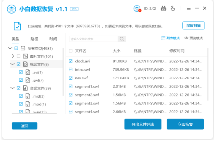 軟件版本:小白數據恢復軟件1.1