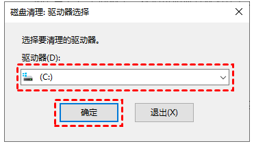 2、在磁盤清理中,選擇要清理的C盤,單擊“確定”。
