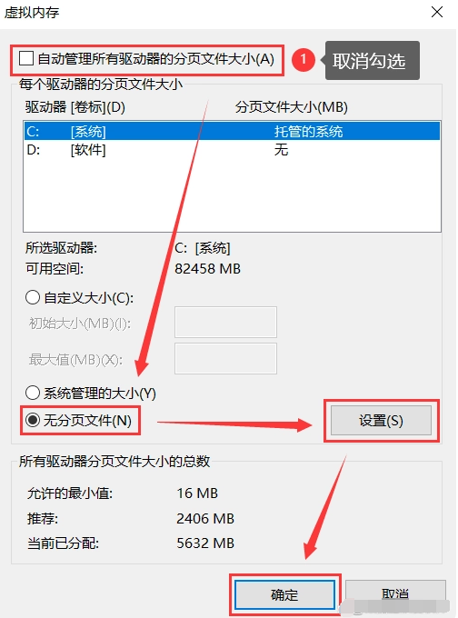 方法四:關閉c盤的虛擬內存