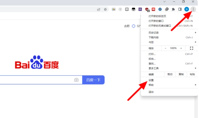 1、依次打開谷歌瀏覽器中打開菜單-設置。