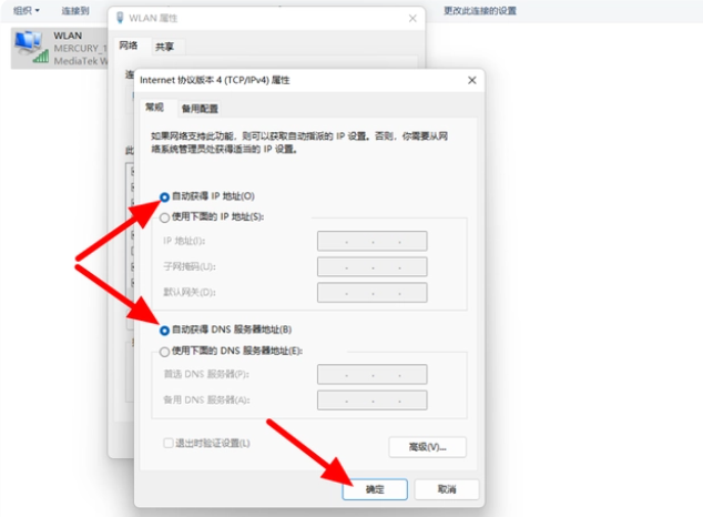 4、勾選自動獲得IP地址和自動獲得dns服務器地址,點擊確定,這樣就恢復成功。