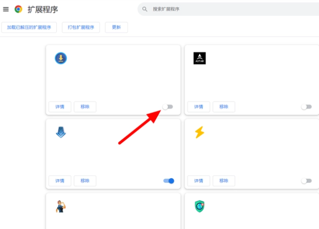2、在擴展程序界面,關閉代理網絡的擴展程序,如果不知道是哪一個可以將所有的都關閉看下。