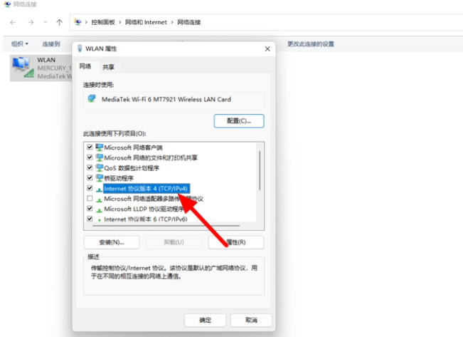 3、在屬性界面,雙擊打開Internet 協議版本 4。