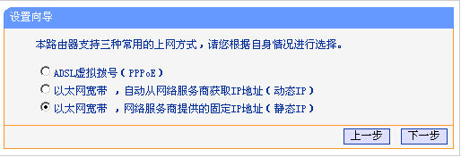 點擊下一步,進入下圖 所示的上網方式選擇頁面,這里根據我們的上網方式進行選擇,一般家庭寬帶用戶是pppoe撥號用戶。這里我們選擇第一項讓路由器自動選擇。