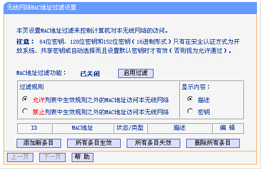在這里可以添加允許或禁止的mac地址訪問本局域網絡,一般的家庭用的話,主機不多,建議啟用允許列表即可,記得添加允許的mac啊