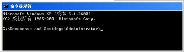 在Windows XP 環境中,點擊開始-運行,在隨后出現的運行窗口輸入“cmd”命令,回車或點擊確定進入下圖所示界面。